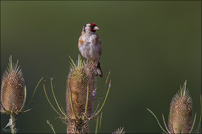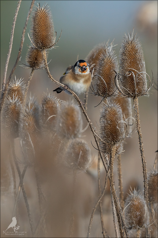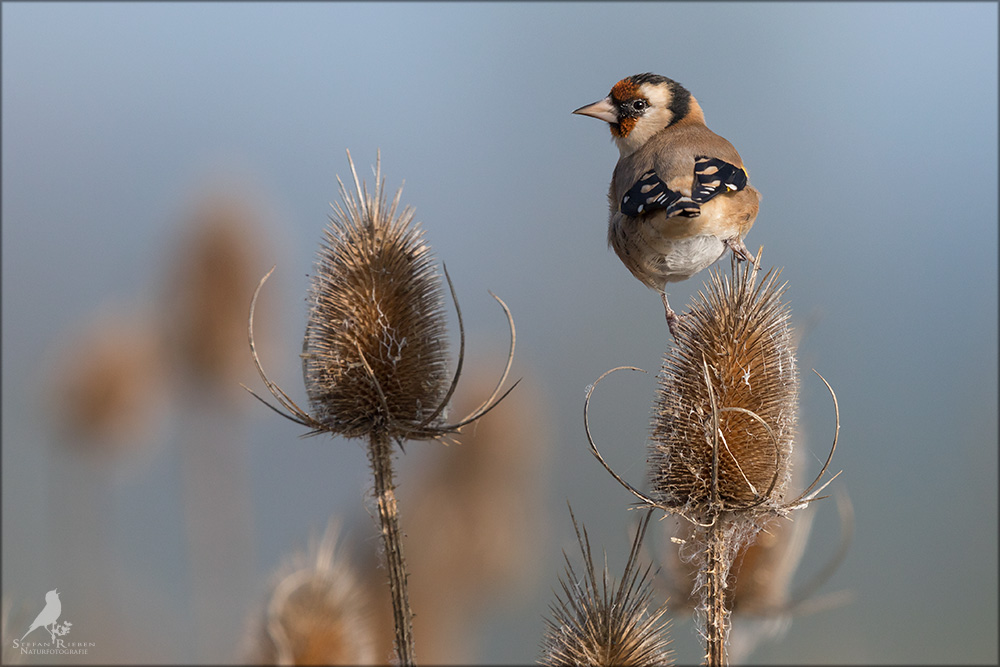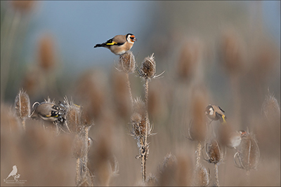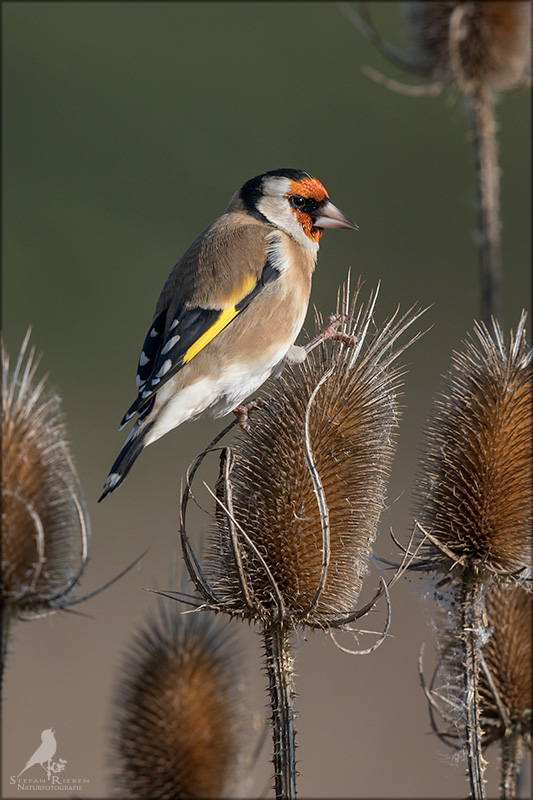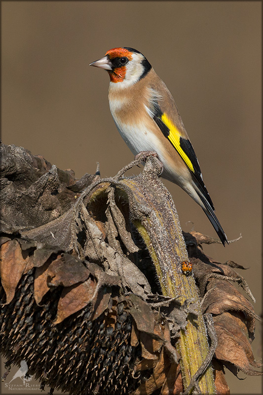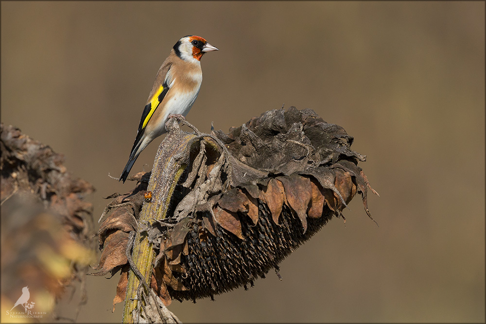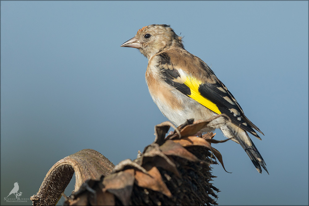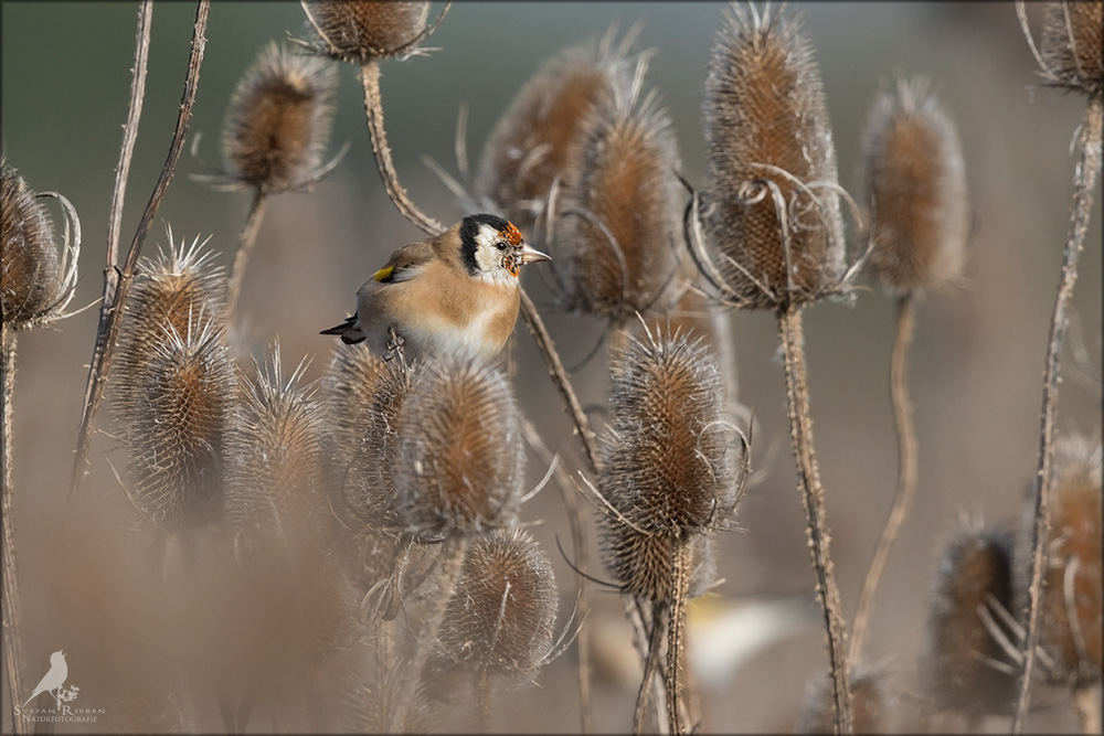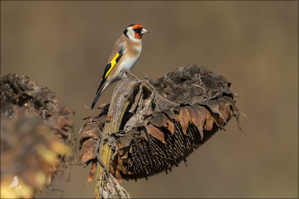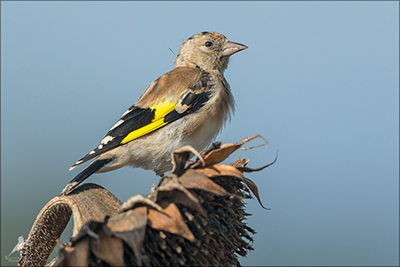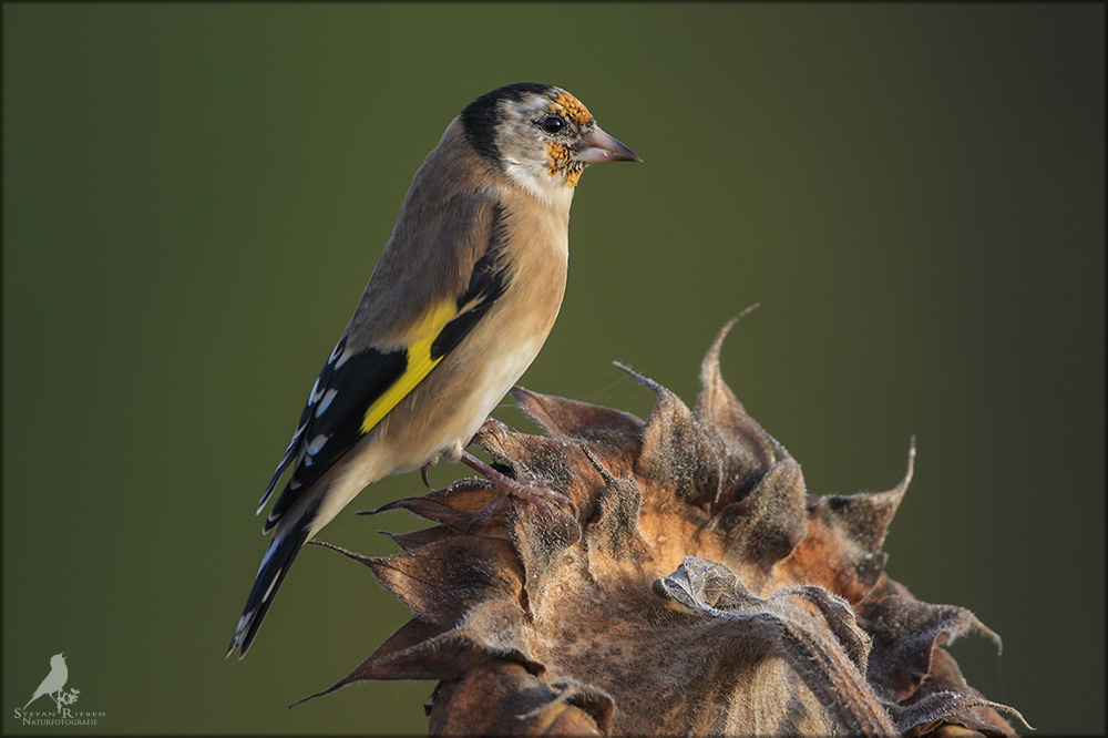 Der Distelfink ist auch unter dem Namen Stieglitz bekannt. Dieser farbenfrohe Fink ist ein sehr geselliger Vogel welcher im Vergleich zu vielen andern Vogelarten kein Revier verteidigt. Oft ist er in Trupps auf Sonnenblumenfeldern oder Buntbrachen anzutreffen. Manchmal verrät in nur sein, für mich etwas metallisch klingender Gesang.