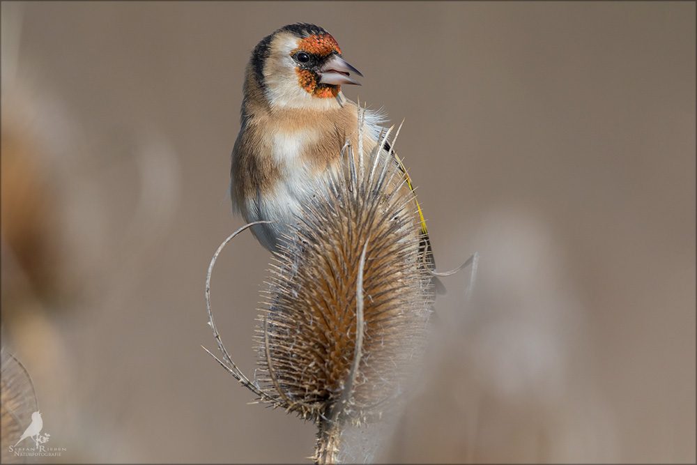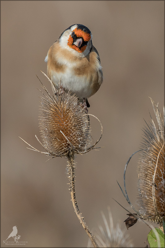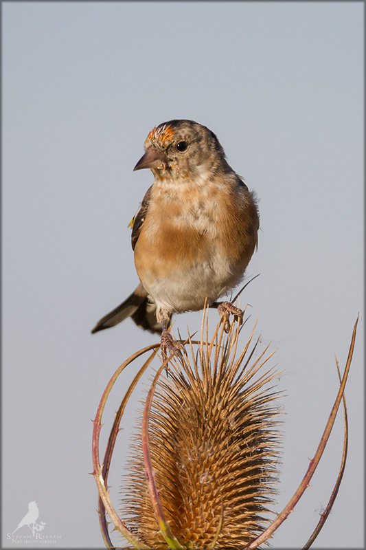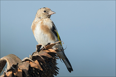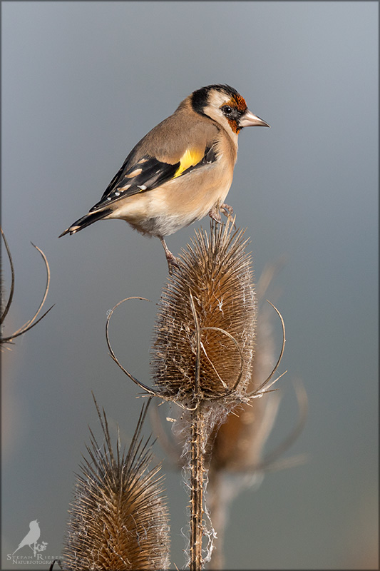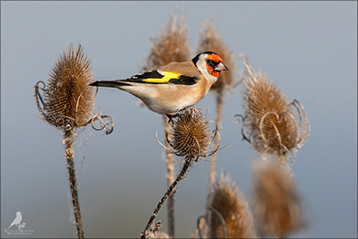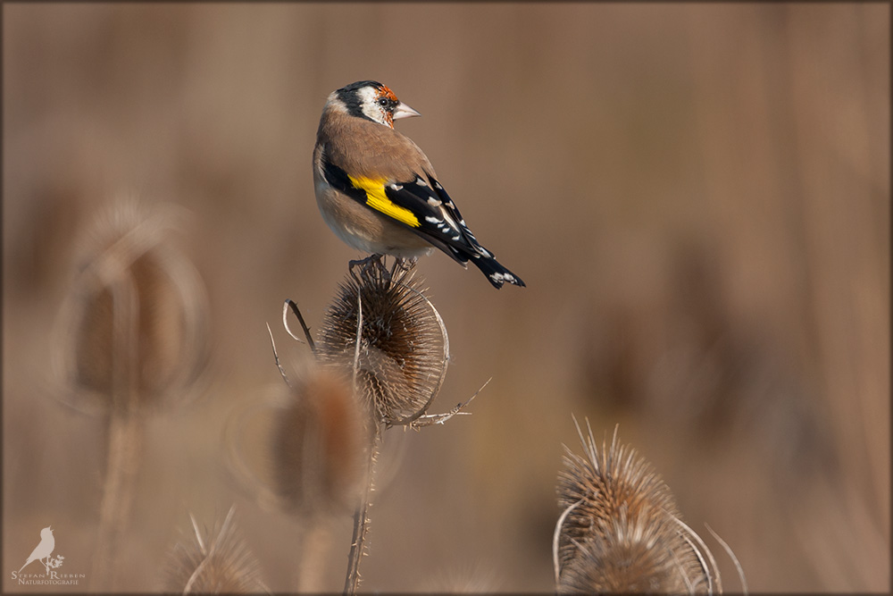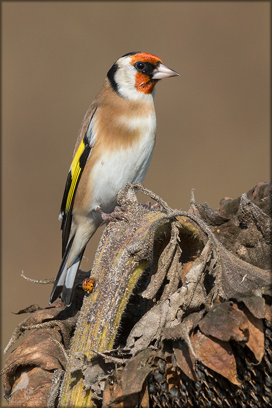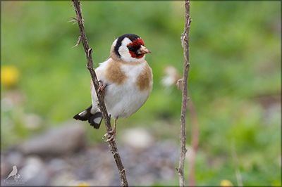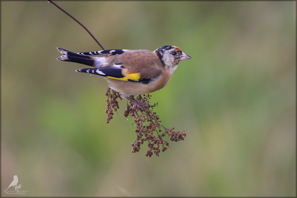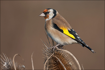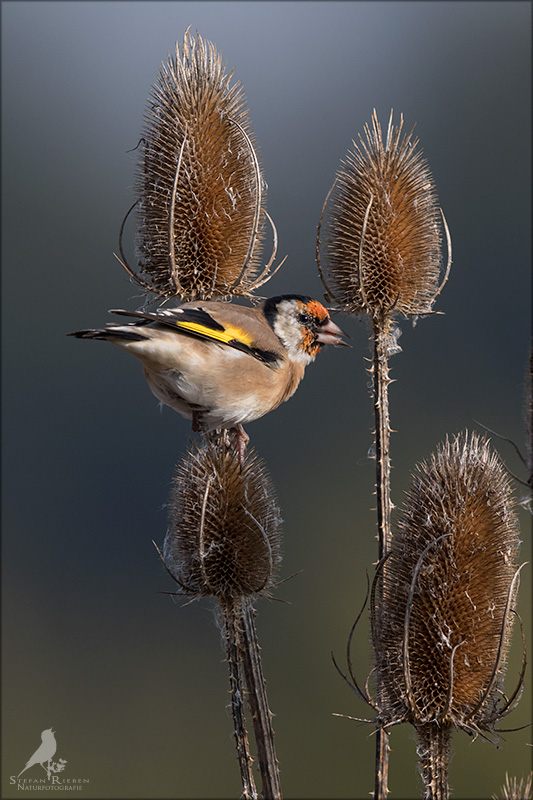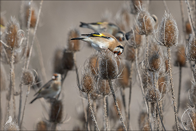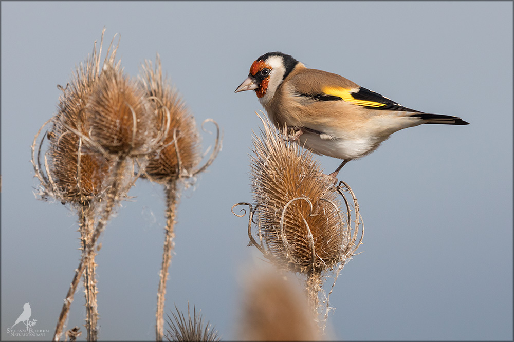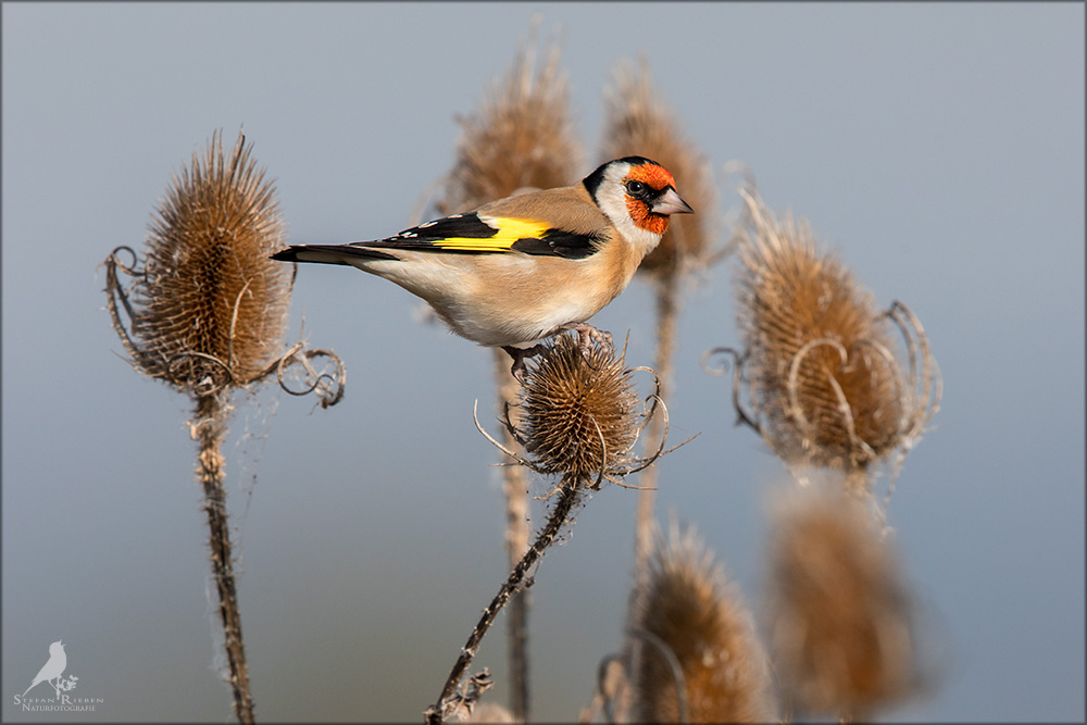 Der Distelfink ist auch unter dem Namen Stieglitz bekannt. Dieser farbenfrohe Fink ist ein sehr geselliger Vogel welcher im Vergleich zu vielen andern Vogelarten kein Revier verteidigt. Oft ist er in Trupps auf Sonnenblumenfeldern oder Buntbrachen anzutreffen. Manchmal verrät in nur sein, für mich etwas metallisch klingender Gesang.