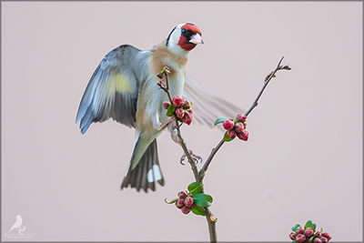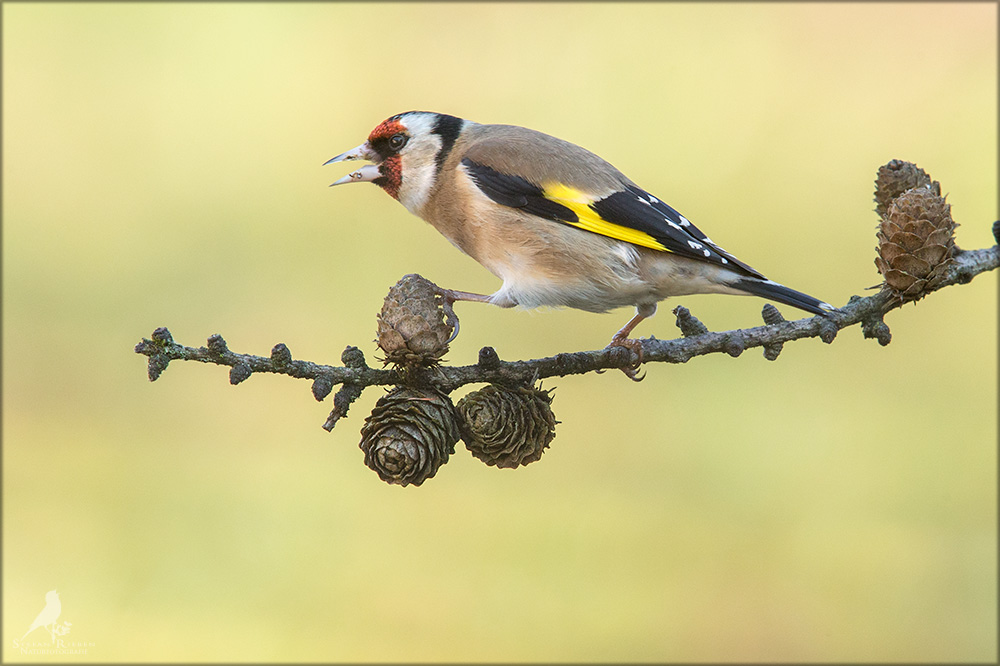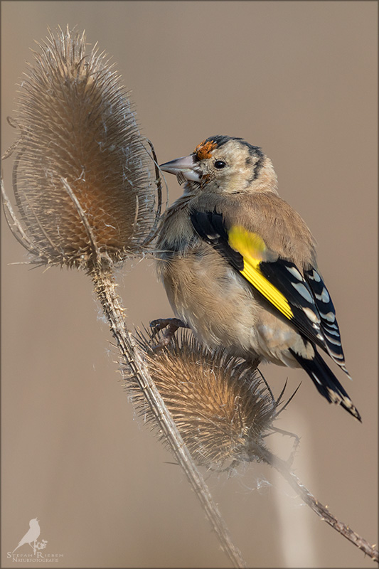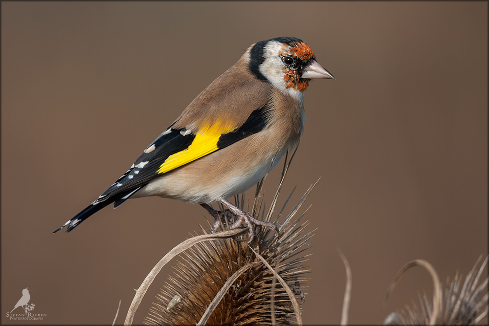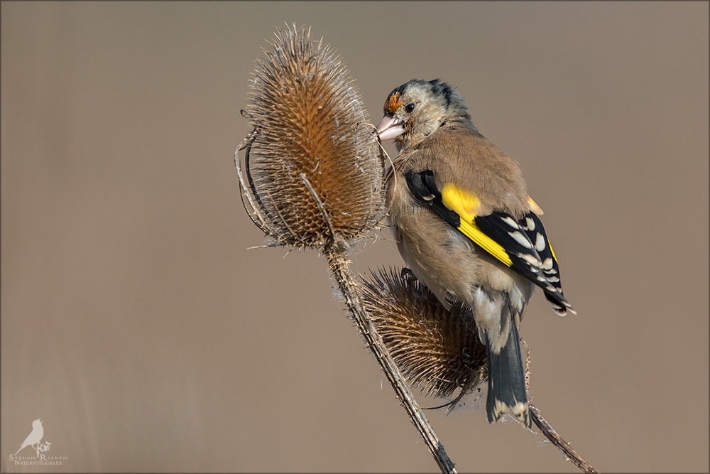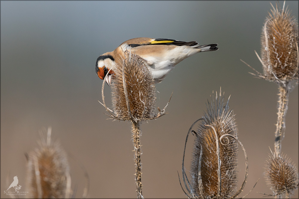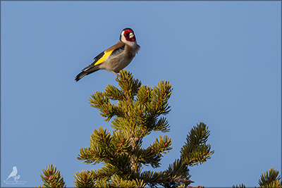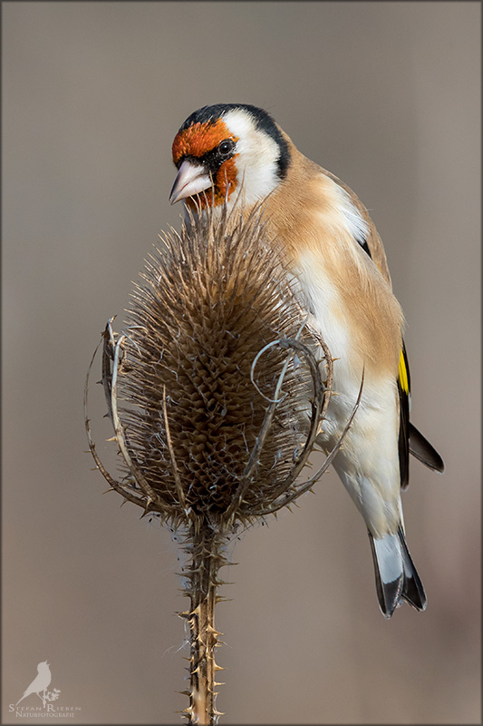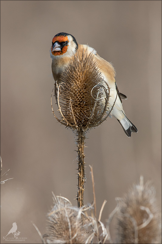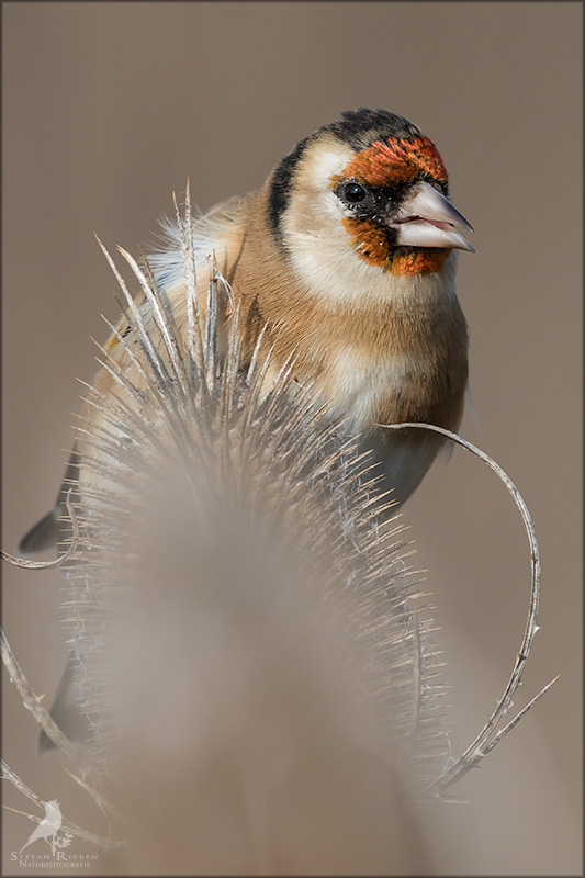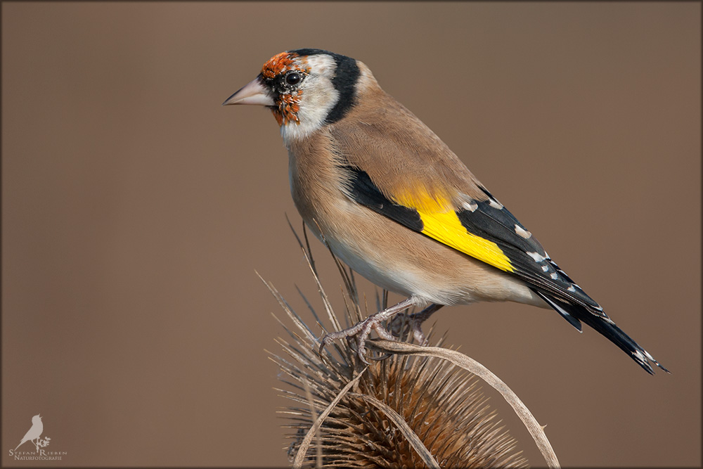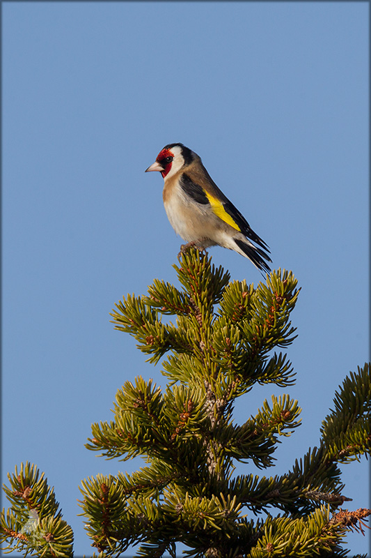 Der Distelfink ist auch unter dem Namen Stieglitz bekannt. Dieser farbenfrohe Fink ist ein sehr geselliger Vogel welcher im Vergleich zu vielen andern Vogelarten kein Revier verteidigt. Oft ist er in Trupps auf Sonnenblumenfeldern oder Buntbrachen anzutreffen. Manchmal verrät in nur sein, für mich etwas metallisch klingender Gesang.